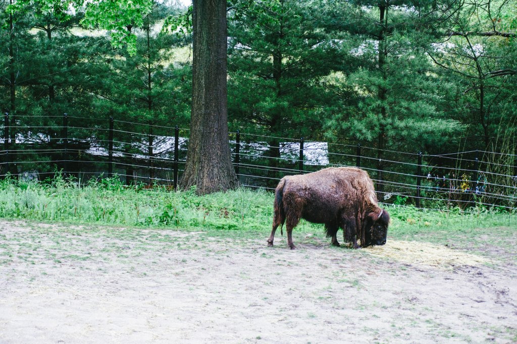 Solitary Bison: Ancient spirit grazing at the edge of emerald pines.